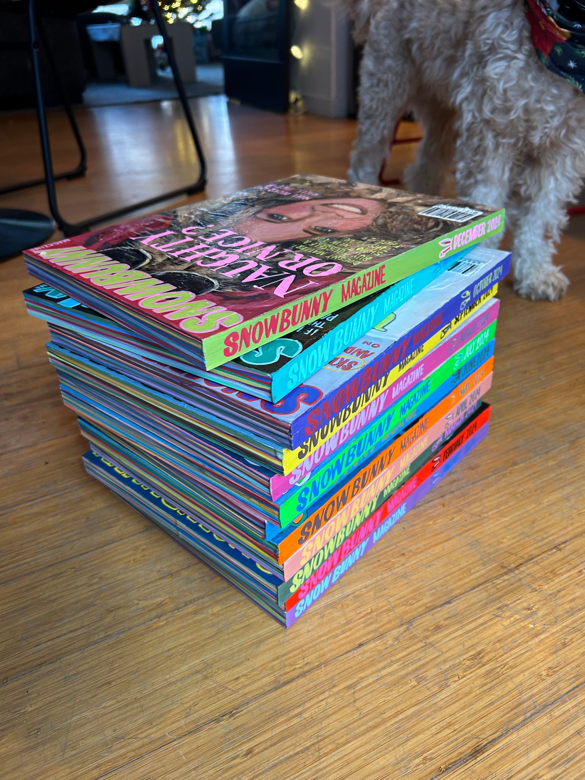 9x12 Mixed media on wood panel, 1/12 part of the Snow Bunny Magazine 2024 series.