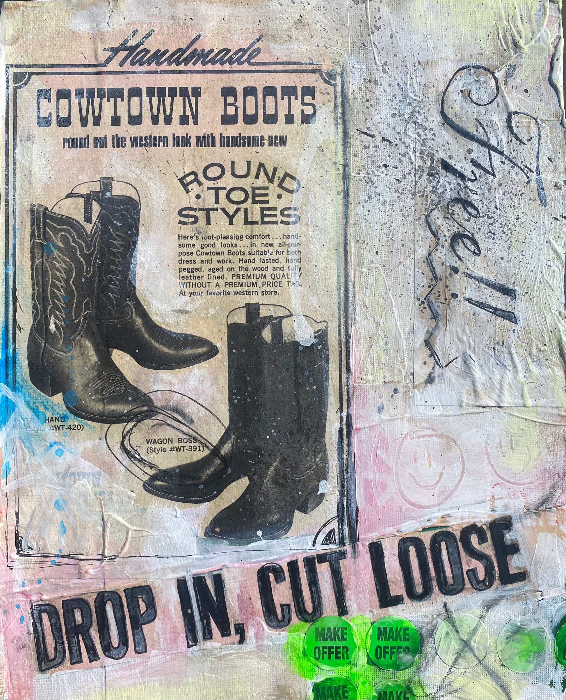 Mixed media on 8x10 board from the "Cash Cowboy" series. Signed on back.