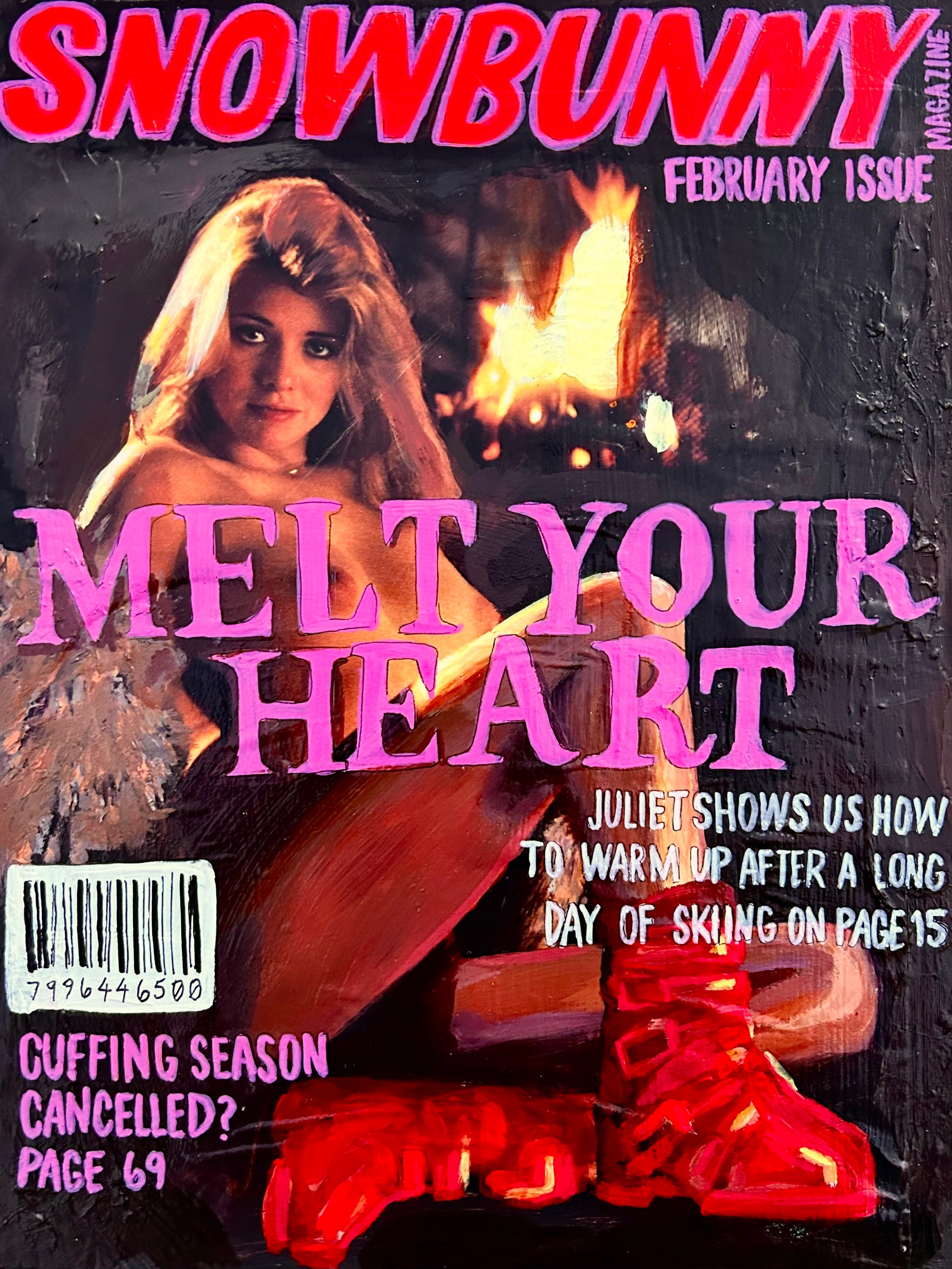 9x12 Mixed media on wood panel, 1/12 part of the Snow Bunny Magazine 2024 series.