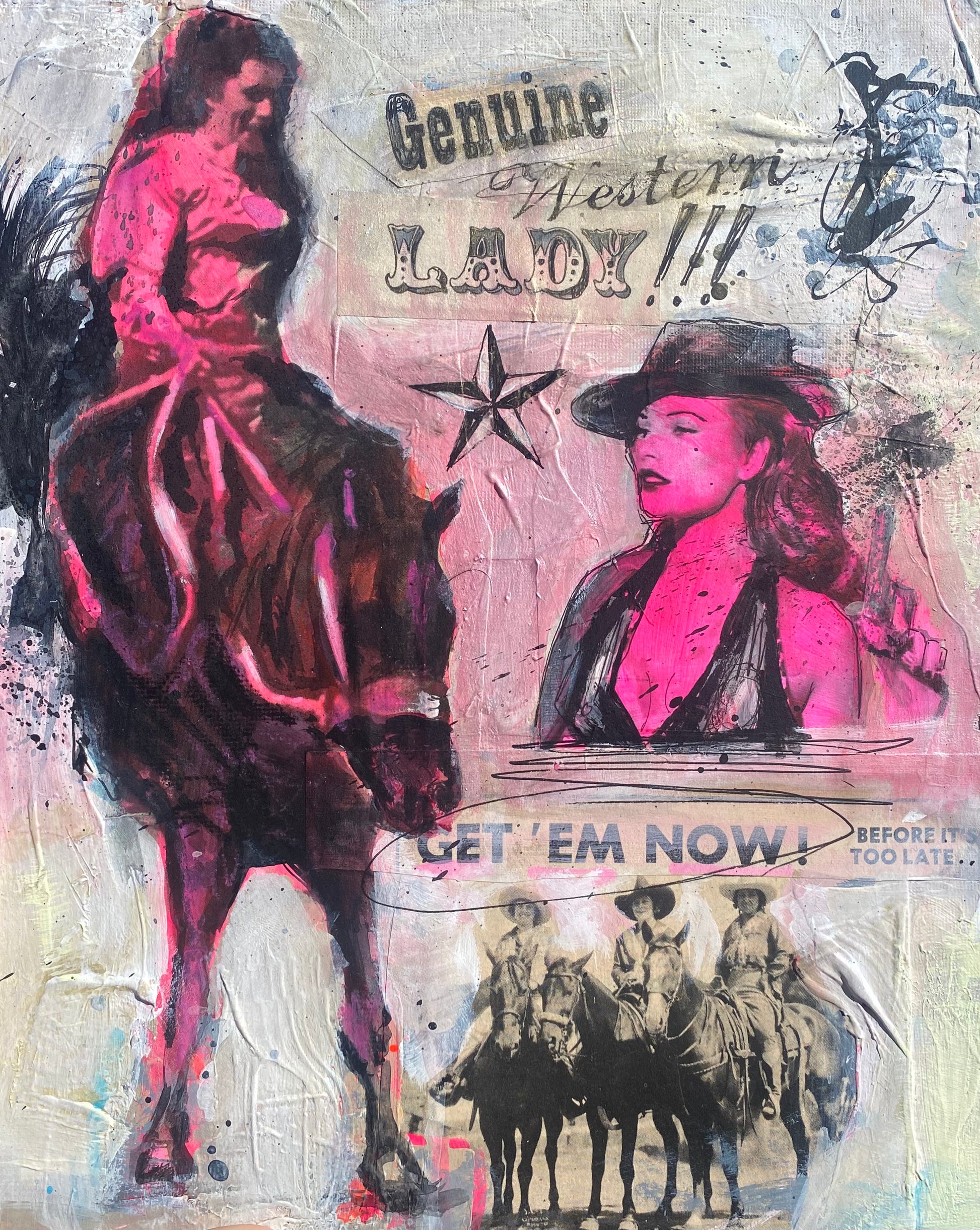 Mixed media on 8x10 board from the "Cash Cowboy" series. Signed on back.