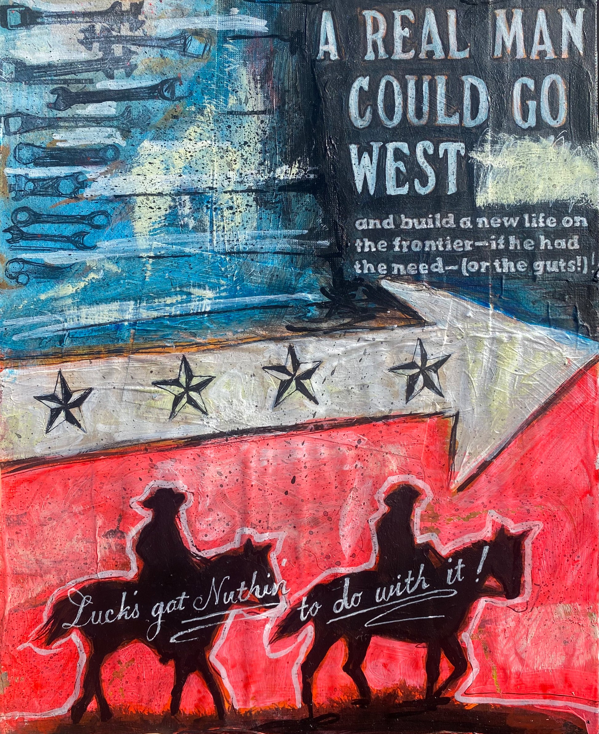 Mixed media on 8x10 board from the "Cash Cowboy" series. Signed on back.