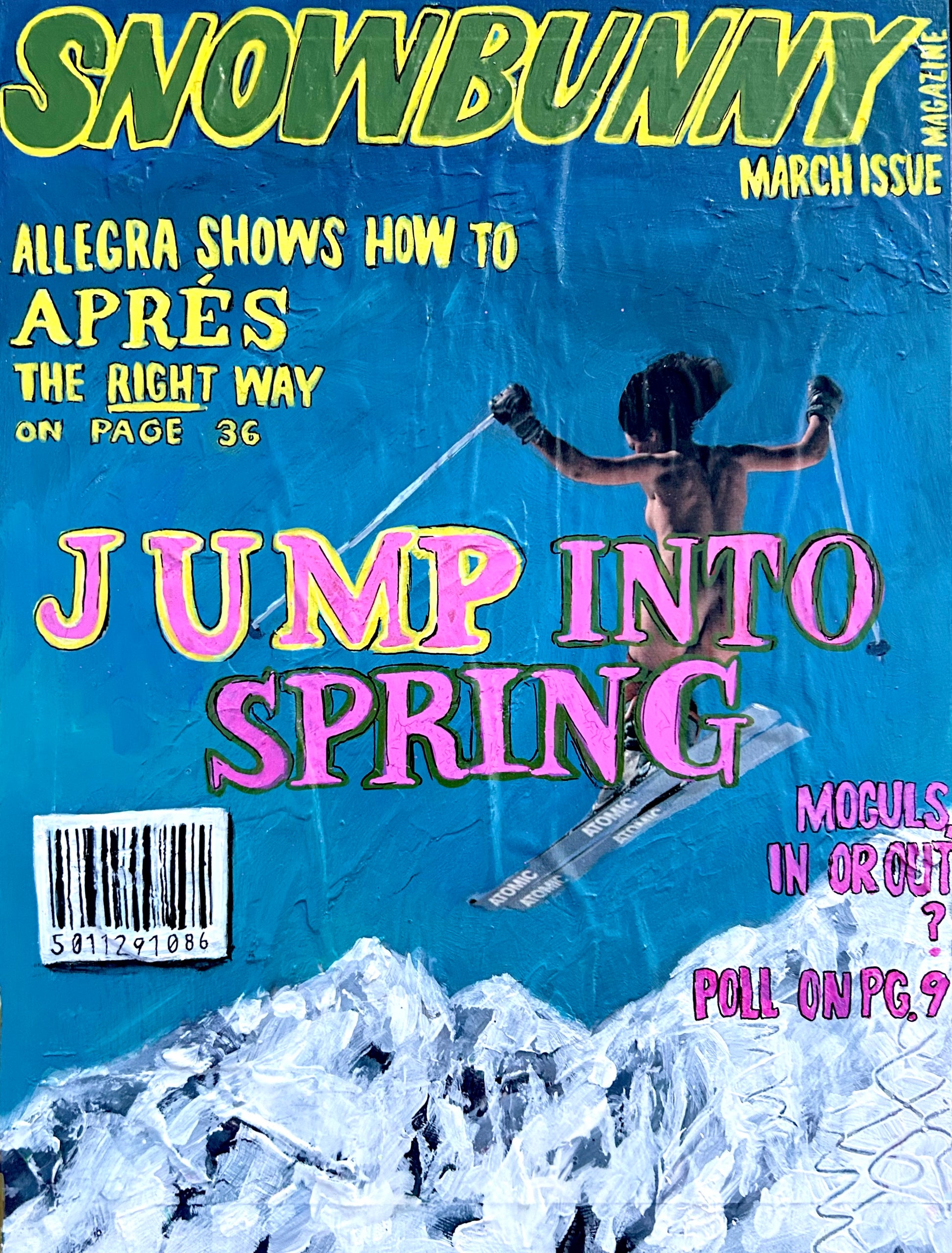9x12 Mixed media on wood panel, 1/12 part of the Snow Bunny Magazine 2024 series.