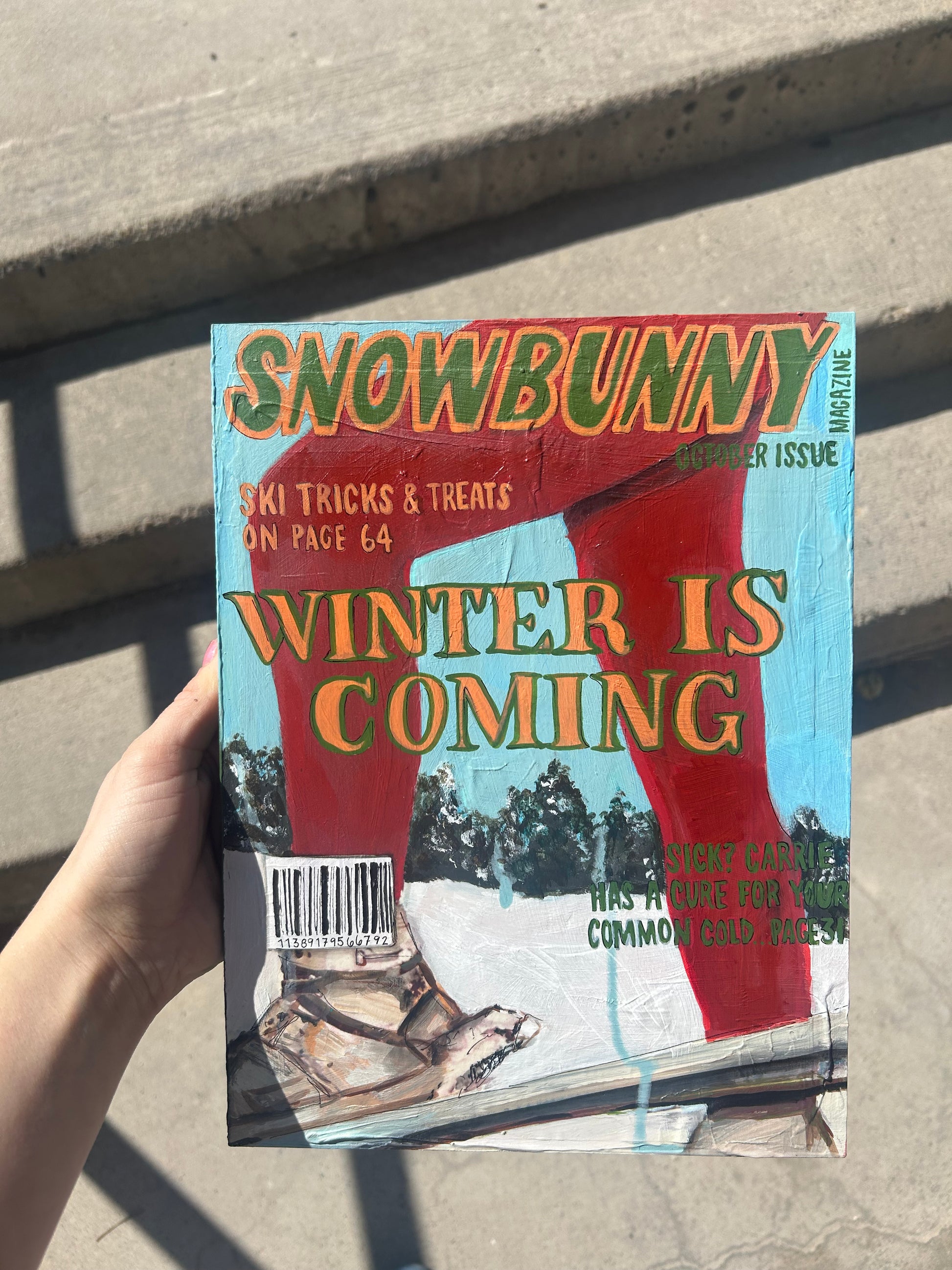 9x12 Mixed media on wood panel, an addition to the Snow Bunny Magazine 2024 series.