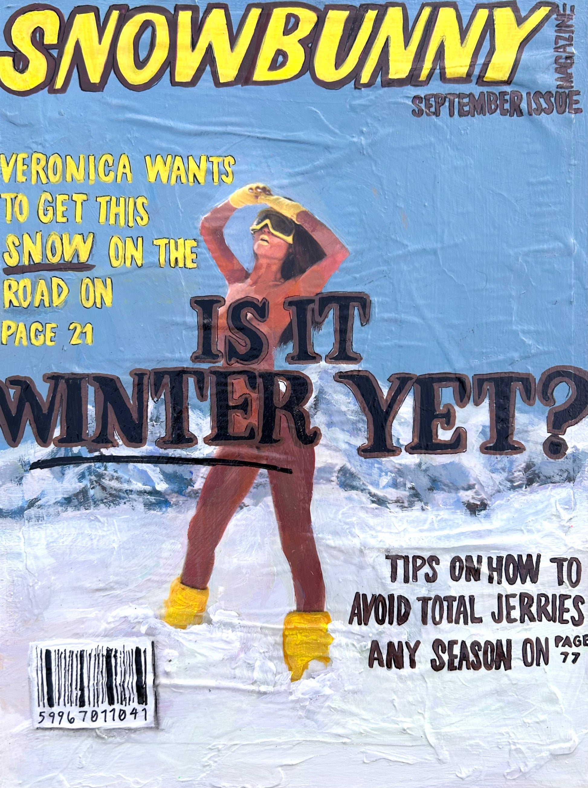 9x12 Mixed media on wood panel, 1/12 part of the Snow Bunny Magazine 2024 series.